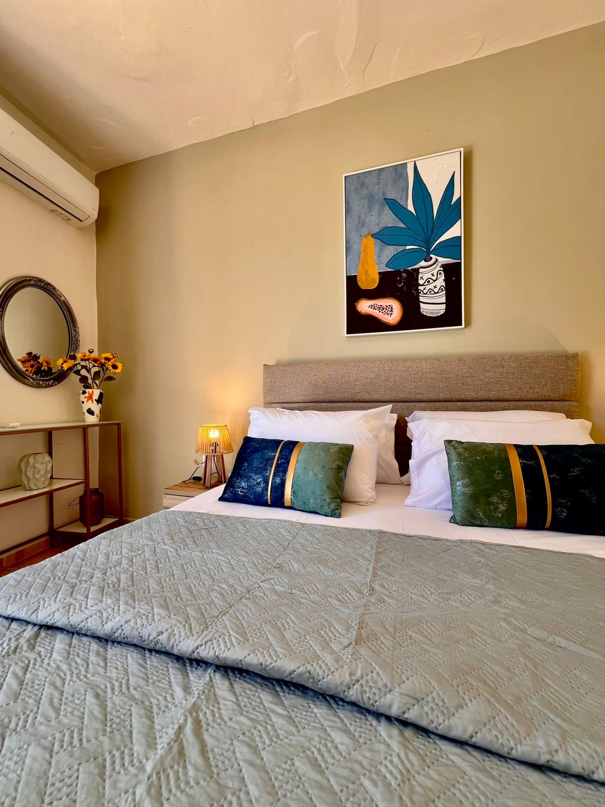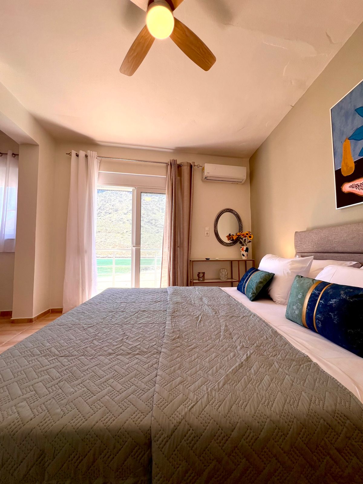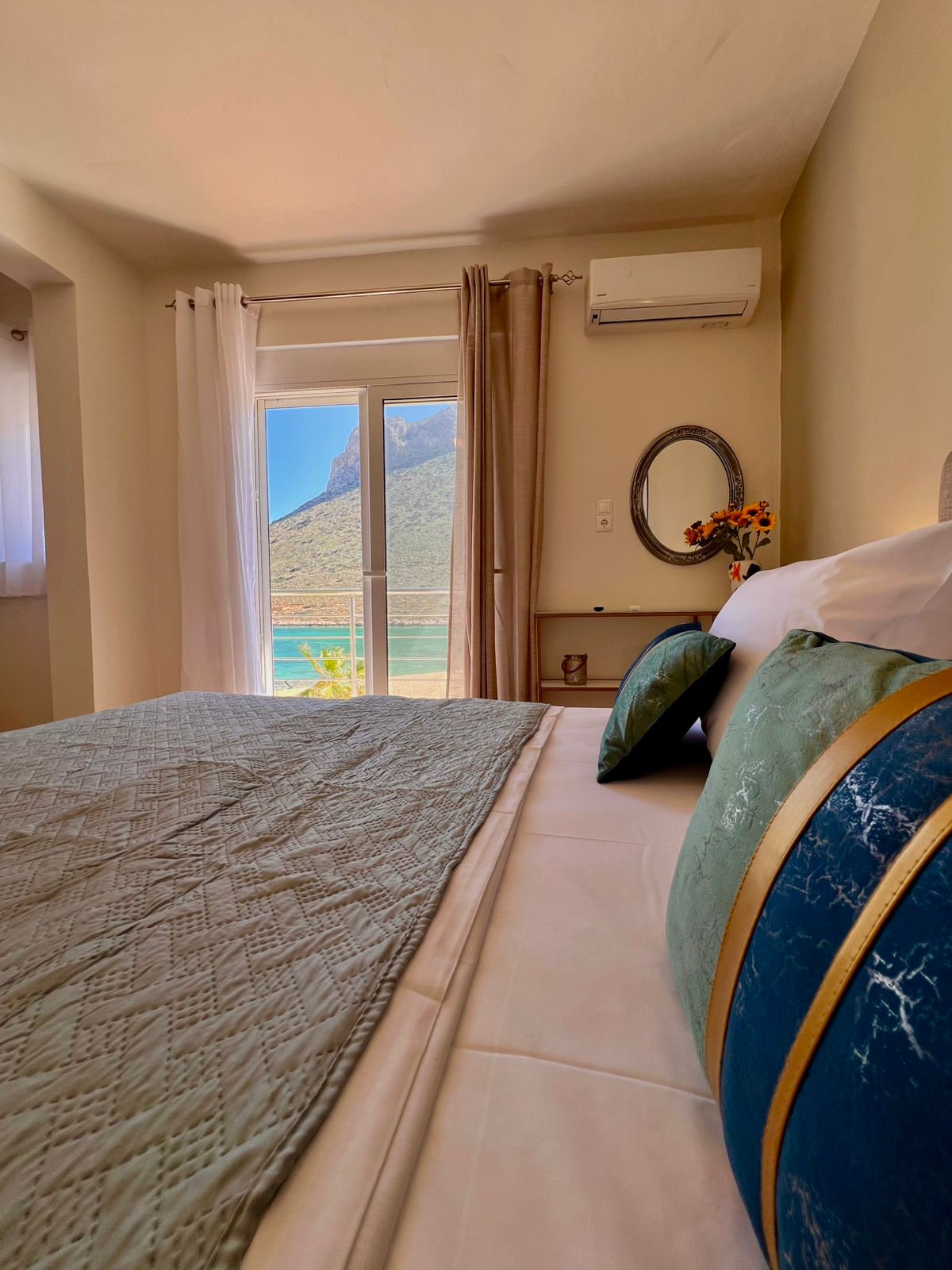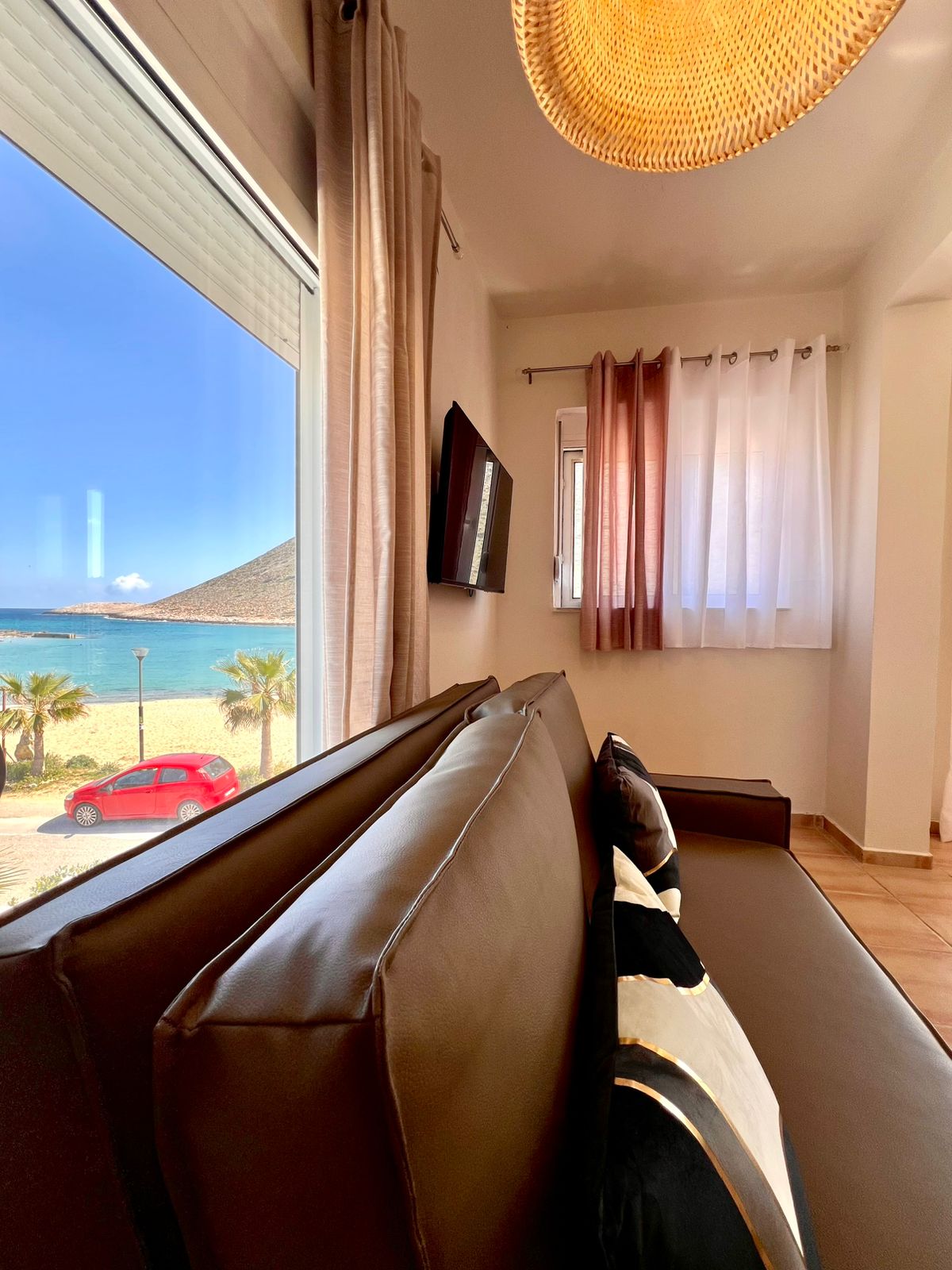 Christiana’s Beach Apartment in Stavros offers direct beachfront access with stunning sea views. Guests can relax on the sandy shore or take a dip in the seasonal outdoor swimming pool. Leisure Facilities: The apartment features a bar and a pool bar, providing entertainment options for all visitors. Free WiFi is available throughout the property, ensuring connectivity for all guests. The apartment includes one bedroom, one bathroom, and a spacious living room. Amenities include air-conditioning, a balcony, a fully equipped kitchen, and a sofa bed.